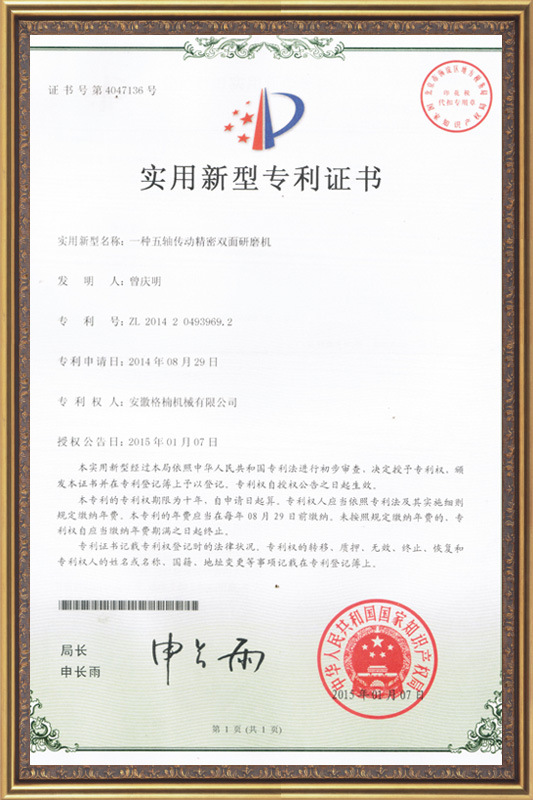 | 實(shí)用新型專(zhuān)利證書(shū) |