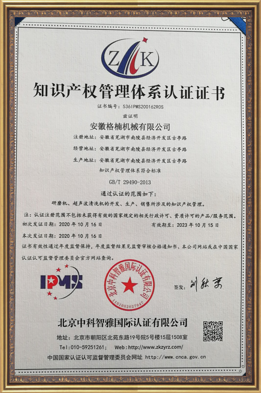 知識(shí)產(chǎn)權(quán)管理體系認(rèn)證證書(shū) |